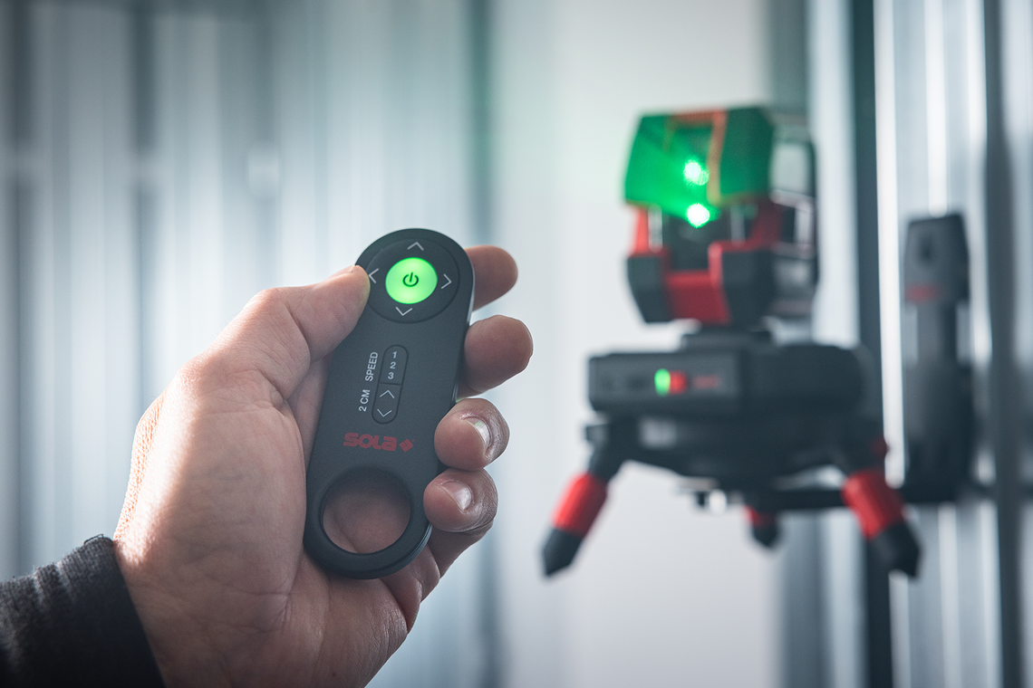 • Kontaktloses, präzises Ausrichten von Laserlinien per Fernbedienung mit einer Reichweite von bis zu 30 m