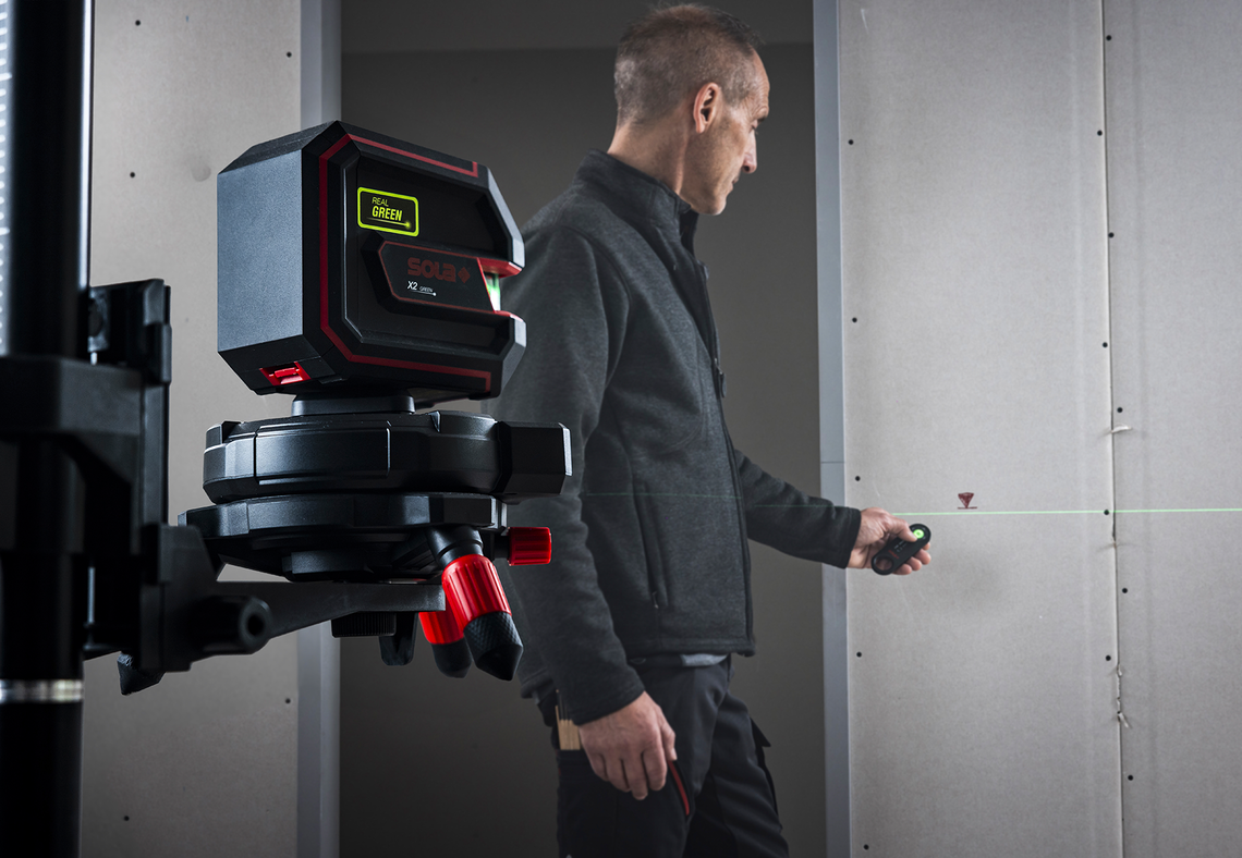 • Präzises Ausrichten von Laserlinien mittels Fernbedienung bis zu 30 m