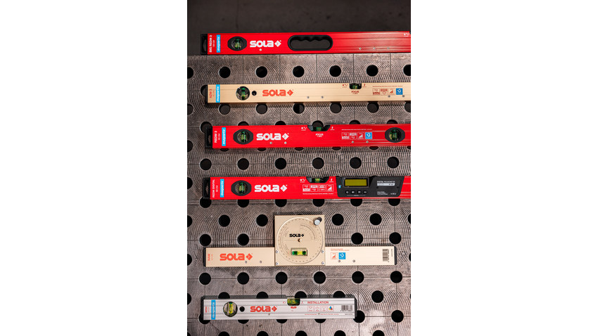 Seit 2020 werden sämtliche magnetischen SOLA Aluminiumprofil-Wasserwaagen nach der seitlichen Einbaumethode gefertigt. Dazu zählen die rot beschichteten Modelle REDM und BIG REDM sowie die digitale Variante RED DIGITAL. Auch der Wasserwaagen-Klassiker AZM (gold eloxiert), die MRMI INSTALLATION für Installationsarbeiten und die Neigungswasserwaage NAM nutzen konsequent die seitliche Magnetintegration.