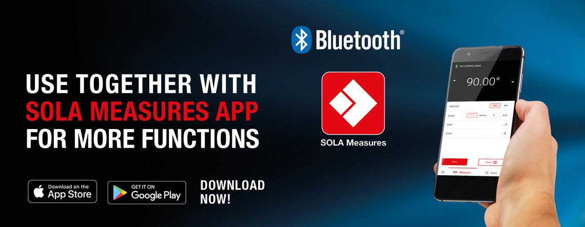 Equipped with Bluetooth, you can connect your SOLA tools to the free SOLA Measures app on your smartphone for using practical additional functions!