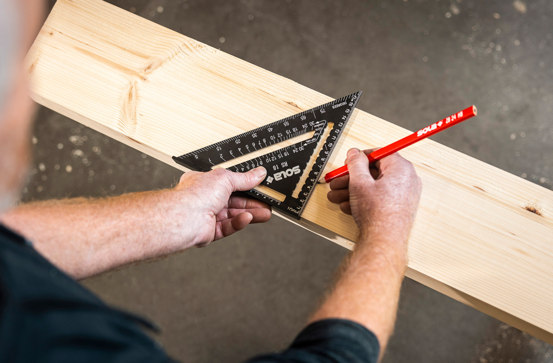 A SOLA talpas ácsderékszöge merőleges vágásoknál alkalmazandó fűrészelési segédeszközként vagy fűrészvezetőként is felhasználható. Ehhez szorosan meg kell markolni a szögmérős ácsderékszöget, és a fűrész megfelelő pozicionálását követően a mérőszár mentén kell végrehajtani a vágást. Ilyen munkákhoz lyukvágó fűrész és körfűrész egyaránt használható. Az eszköz 45°-os gérvágás elvégzésére is alkalmas.